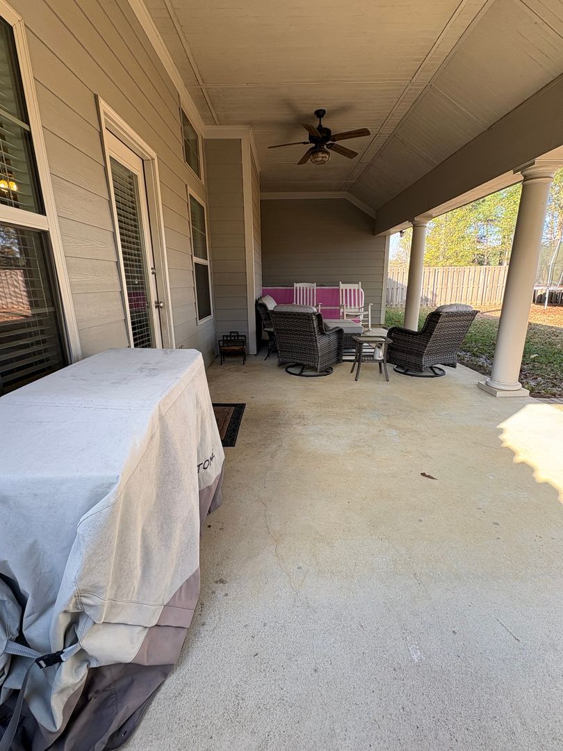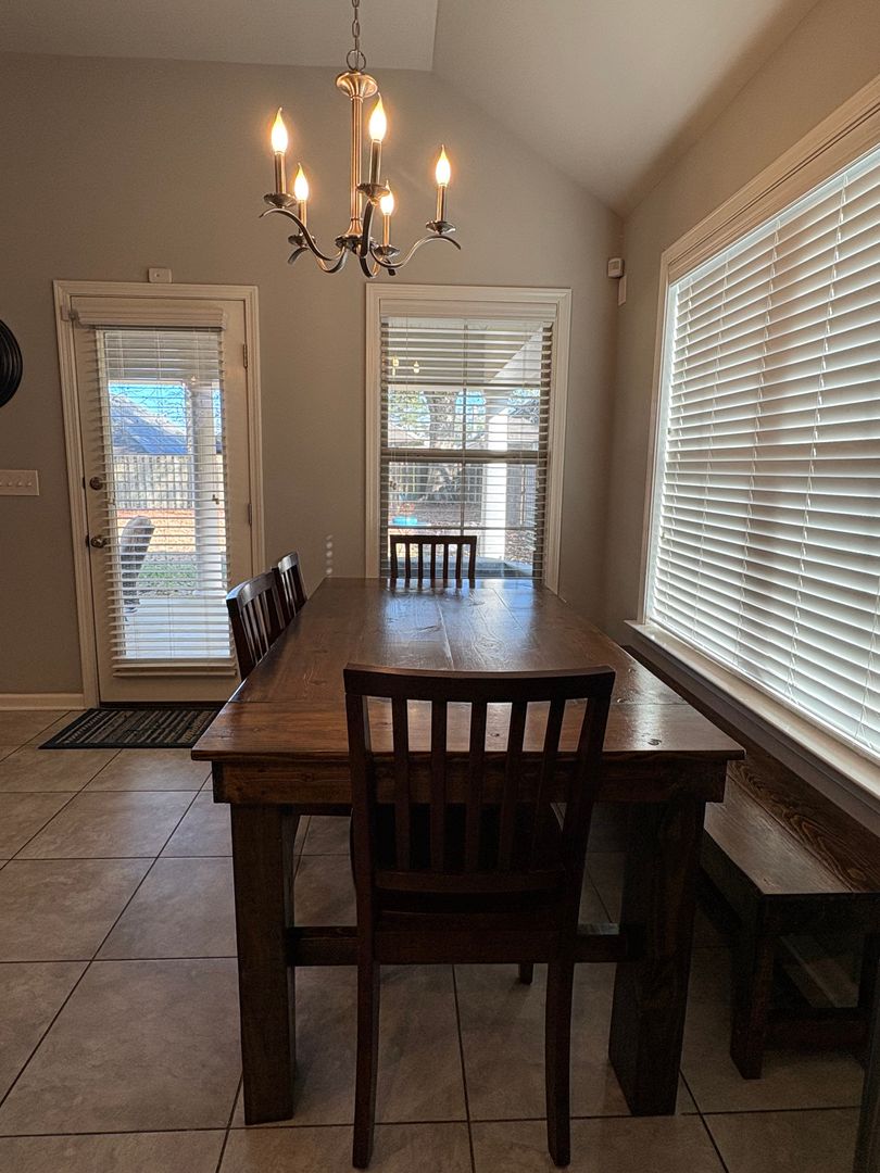 Step outside to an extended covered porch, offering extra room for outdoor dining, relaxing, and entertaining. The porch overlooks a peaceful, tree-filled backyard—and the wooden swing set stays with the home, making it move-in ready for playtime and family fun.