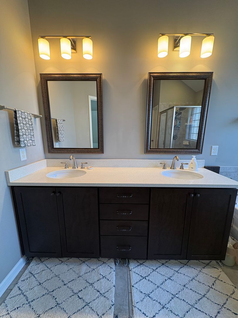 You’ll love the well-organized pantry with built-in shelving and the spacious laundry room—complete with additional storage and convenient hooks for bags and coats. The primary suite is a private retreat, featuring a spa-like bath with double granite vanities, his-and-hers closets, a relaxing garden tub, and a beautiful ceramic tile shower.