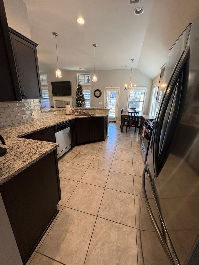 You will fall in love with this sensational 4-bedroom, 2-bath home in highly sought-after Woodland Creek! This open floor plan features fresh colors and stylish finishes throughout. A brand-new, custom-made accent wall at the entryway creates an immediate “wow” factor and sets the tone for the stylish design found in the rest of the home. The separate dining room shines with hardwood floors, while the generous breakfast bar with granite countertops offers the perfect spot for quick meals or entertaining guests.